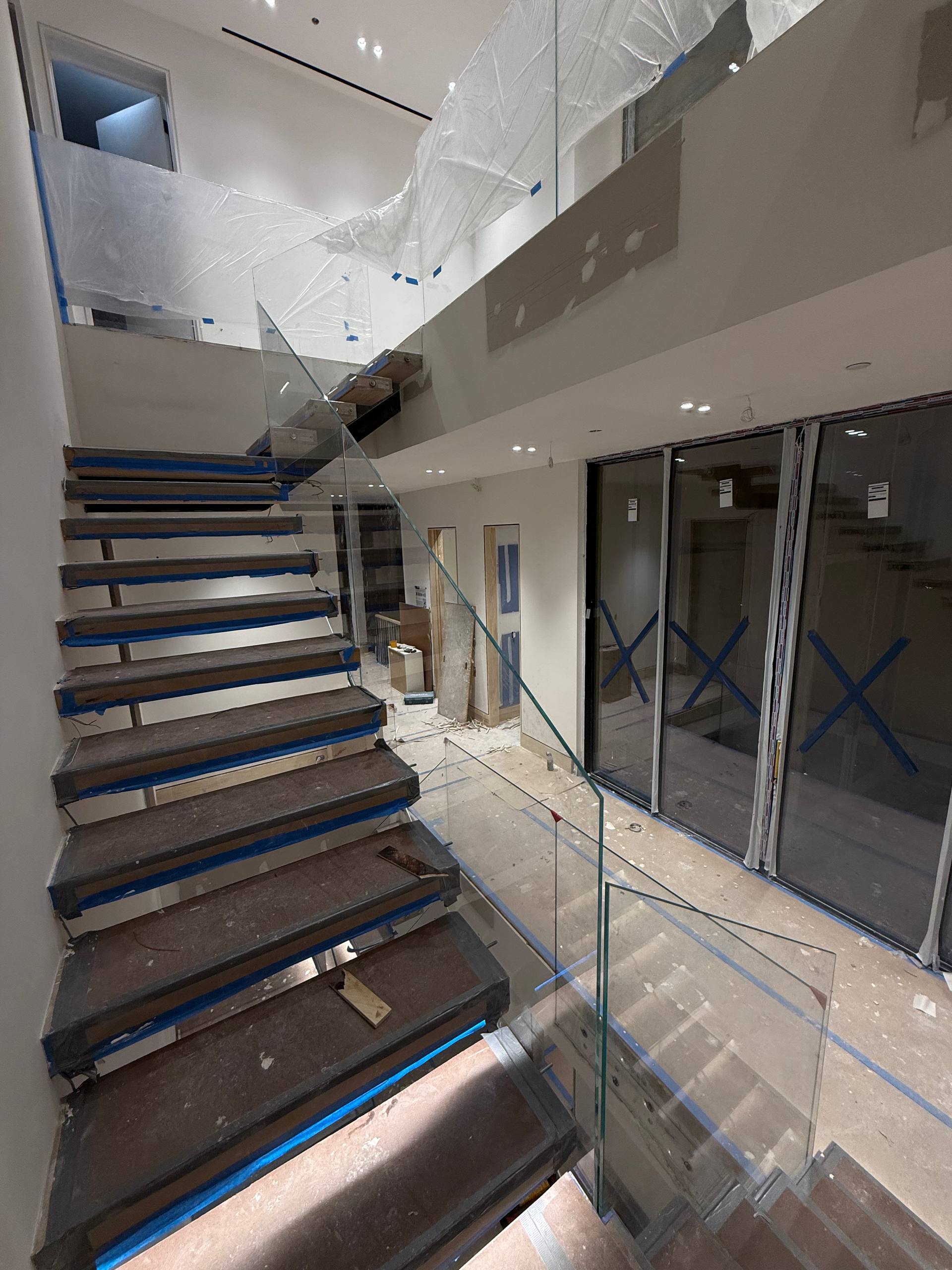 Safety-focused glass railing systems for staircases, balconies, and elevated areas.
